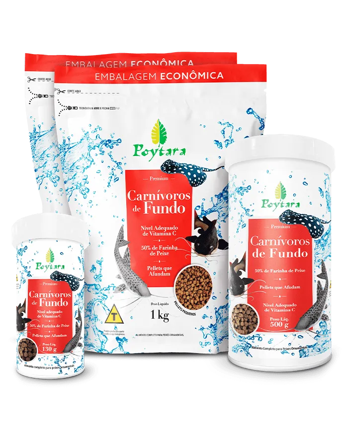 A Poytara Carnívoros de Fundo é uma ração desenvolvida especialmente para peixes carnívoros de hábitos bentônicos, como cascudos e outros bagres ornamentais. Sua fórmula balanceada e nutritiva oferece uma alimentação completa, contribuindo para o crescimento saudável, a vitalidade e a coloração intensa desses peixes. Produzida com ingredientes de alta qualidade, garante excelente desempenho e aceitação.